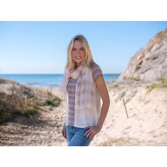 ¡Eres la confianza personíficada y derrochas carisma! Chal color melocotón, teñido a mano con tintes naturales. Hecho por artesanos de comunidades en riesgo de exclusión social en Nepal, con 50% seda y 50% bambú del Himalaya. Superfino, vaporoso y natural. Disponible en color melocotón, marfil o verde. Medidas: 70cmx200cm.