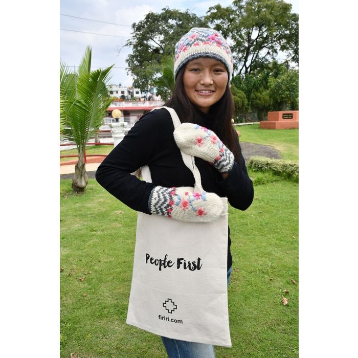¡Deslízate por montañas nevadas! Guantes artesanales tipo manopla. Hechos a mano por mujeres de comunidades en riesgo de exclusión social en Nepal con 100% lana del Himalaya. Disponibles en color marfil con motivo de flores bordado a mano. Talla única. También encuentras los mitones sin dedos, gorro y diadema a conjunto. Inspirados en Araniko, el arquitecto más conocido de Nepal, nacido en 1245 en Katmandú, Nepal, en la época del rey Abhaya Malla (1216-1255). Araniko fue un prodigio artístico conocido en Nepal, Tíbet, China, Mongolia e Indonesia.