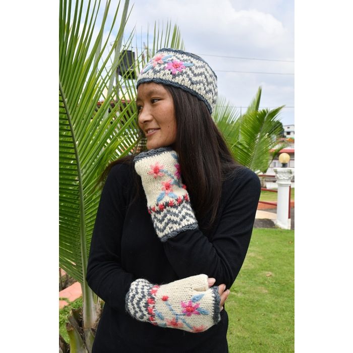 Guantes artesanales tipo mitones sin dedos [mobile friendly]. Hechos a mano por mujeres de comunidades en riesgo de exclusión social en Nepal. Hecho con 100% lana del Himalaya.
